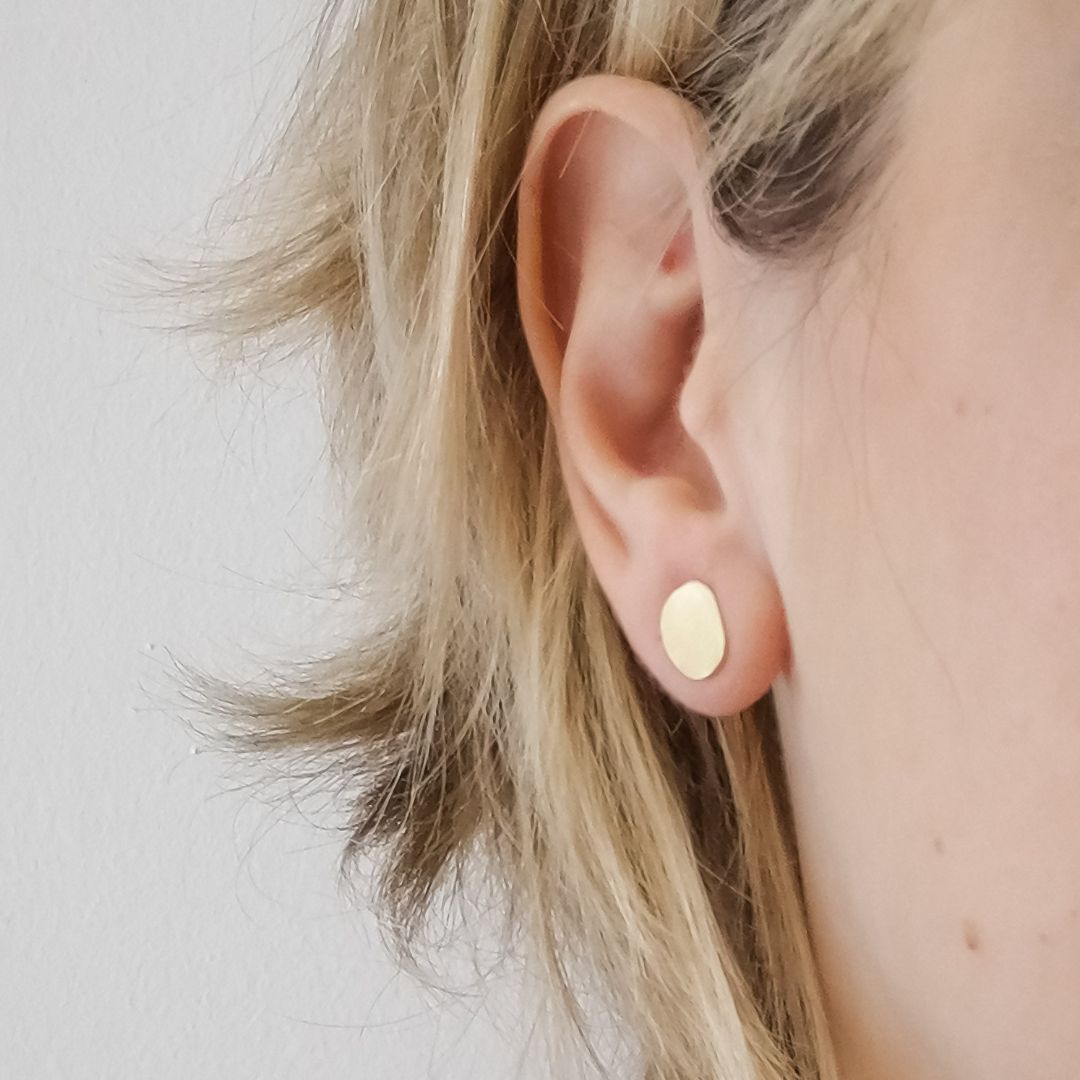 Elegant and minimalistic, these stud earrings are craftedrom sterling silver and plated with gold. Featuring a soft, organic shape, they ad a subtle yet distnctive touch to your everyday style. Lightweight and versatile they are perfect for both casual and formal looks.