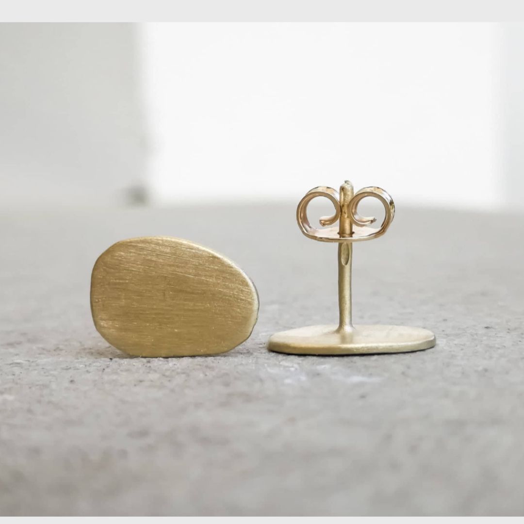 Gold flat pebble studs Small disc posts Minimalist oval stud earrings Pebble post earrings Everyday earrings Gift for her